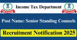 Income Tax Department Recruitment 2025 Apply for 04 Senior Standing Counsels Vacancies in Chandigarh location. Income Tax Department Officials are recently published a job notification to fill up 04 Posts through Offline mode. All the eligible aspirants can check the Income Tax Department career official website i.e., incometaxindia.gov.in recruitment 2025. The last date to Apply Offline on or before 20-Aug-2025.