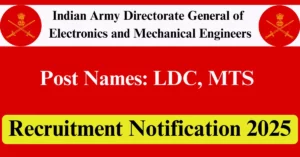 Indian Army DG EME Recruitment 2025 Apply for 69 LDC, MTS Vacancies in All India location. Indian Army Directorate General of Electronics and Mechanical Engineers Officials are recently published a job notification to fill up 69 Posts through Offline mode. All the eligible aspirants can check the Indian Army DG EME career official website i.e., indianarmy.nic.in recruitment 2025. The last date to Apply Offline on or before 15-Nov-2025.