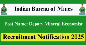 Indian Bureau of Mines Recruitment 2025 Apply for 10 Deputy Mineral Economist Vacancies in Nagpur – Maharashtra location. Indian Bureau of Mines Officials are recently published a job notification to fill up 10 Posts through Offline mode. All the eligible aspirants can check the Indian Bureau of Mines career official website i.e., ibm.gov.in recruitment 2025. The last date to Apply Offline on or before 13-Sep-2025.