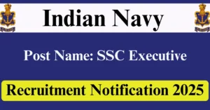 Indian Navy Recruitment 2025 Apply for 15 SSC Executive Vacancies in All India location. Indian Navy Officials are recently published a job notification to fill up 15 Posts through Online mode. All the eligible aspirants can check the Indian Navy career official website i.e., joinindiannavy.gov.in recruitment 2025. The last date to Apply Online on or before 17-Aug-2025.