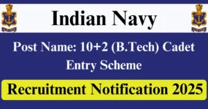 Post Details: 10+2 (B.Tech) Cadet Entry Scheme