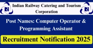 IRCTC Recruitment 2025 Apply for 45 Computer Operator & Programming Assistant Vacancies in Kolkata – West Bengal location. Indian Railway Catering and Tourism Corporation Officials are recently published a job notification to fill up 45 Posts through Online mode. All the eligible aspirants can check the IRCTC career official website i.e., irctc.com recruitment 2025. The last date to Apply Online on or before 28-Oct-2025.