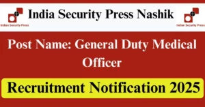 ISP Nashik Recruitment 2025 Apply for 1 General Duty Medical Officer Vacancies in Nashik – Maharashtra location. India Security Press Nashik Officials are recently published a job notification to fill up 1 Posts through Walkin mode. All the eligible aspirants can check the ISP Nashik career official website i.e., ispnasik.spmcil.com recruitment 2025. The last date to attend for Walk-in-interview on 05-Jun-2025.