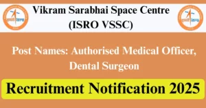 ISRO VSSC Recruitment 2025 Apply for Various Authorised Medical Officer Vacancies in Thiruvananthapuram, Ernakulam – Kerala location. Vikram Sarabhai Space Centre Officials are recently published a job notification to fill up Various Posts through E-Mail mode. All the eligible aspirants can check the ISRO VSSC career official website i.e., vssc.gov.in recruitment 2025. The last date to send an E-Mail on or before 07-Dec-2025.