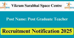 ISRO VSSC Recruitment 2025 Apply for 1 Post Graduate Teacher Vacancies in Thiruvananthapuram – Kerala location. Vikram Sarabhai Space Centre Officials are recently published a job notification to fill up 1 Posts through Online mode. All the eligible aspirants can check the ISRO VSSC career official website i.e., vssc.gov.in recruitment 2025. The last date to Apply Online on or before 07-Oct-2025.