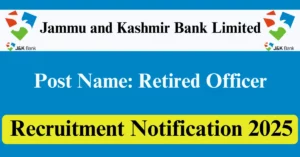 J&K Bank Recruitment 2025 Apply for Various Retired Officer Vacancies in All India location. Jammu and Kashmir Bank Limited Officials are recently published a job notification to fill up Various Posts through Online/Offline mode. All the eligible aspirants can check the J&K Bank career official website i.e., jkbank.com recruitment 2025. The last date to Apply Online/Offline on or before 15-Jul-2025.