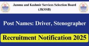 JKSSB Recruitment 2025 Apply for 468 Driver, Stenographer Vacancies in Jammu – Jammu & Kashmir location. Jammu and Kashmir Services Selection Board Officials are recently published a job notification to fill up 468 Posts through Online mode. All the eligible aspirants can check the JKSSB career official website i.e., jkssb.nic.in recruitment 2025. The last date to Apply Online on or before 18-Nov-2025.