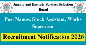 JKSSB Recruitment 2026 Apply for 390 Stock Assistant, Works Supervisor Vacancies in Jammu – Jammu & Kashmir location. Jammu and Kashmir Services Selection Board Officials are recently published a job notification to fill up 390 Posts through Online mode. All the eligible aspirants can check the JKSSB career official website i.e., jkssb.nic.in recruitment 2026. The last date to Apply Online on or before 25-Feb-2026.