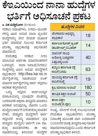 Educational Qualification: As per KEA official notification candidate should have completed As per KEA Norms from any of the recognized boards or Universities.
