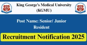 KGMU Recruitment 2025 Apply for 183 Senior/ Junior Resident Vacancies in Lucknow – Uttar Pradesh location. King George’s Medical University Officials are recently published a job notification to fill up 183 Posts through Walkin mode. All the eligible aspirants can check the KGMU career official website i.e., kgmu.org recruitment 2025. The last date to attend for Walk-in-interview on 14-Aug-2025.