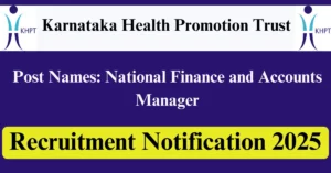 KHPT Recruitment 2025 Apply for 1 National Finance and Accounts Manager Vacancies in Delhi – New Delhi location. Karnataka Health Promotion Trust Officials are recently published a job notification to fill up 1 Posts through Online mode. All the eligible aspirants can check the KHPT career official website i.e., khpt.org recruitment 2025. The last date to Apply Online on or before 09-Dec-2025.