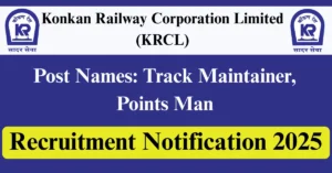 KRCL Recruitment 2025 Apply for 79 Track Maintainer, Points Man Vacancies in Karnataka – Maharashtra – Goa location. Konkan Railway Corporation Limited Officials are recently published a job notification to fill up 79 Posts through Online mode. All the eligible aspirants can check the KRCL career official website i.e., konkanrailway.com recruitment 2025. The last date to Apply Online on or before 12-Aug-2025.