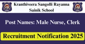 KSRSS Recruitment 2025 Apply for 4 Male Nurse, Clerk Vacancies in Belagavi – Karnataka location. Kranthiveera Sangolli Rayanna Sainik School Officials are recently published a job notification to fill up 4 Posts through Offline mode. All the eligible aspirants can check the KSRSS career official website i.e., ksrss.com recruitment 2025. The last date to Apply Offline on or before 26-Dec-2025.