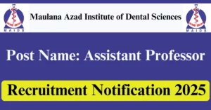 MAIDS Recruitment 2025 Apply for 17 Assistant Professor Vacancies in Delhi – New Delhi location. Maulana Azad Institute of Dental Sciences Officials are recently published a job notification to fill up 17 Posts through Offline mode. All the eligible aspirants can check the MAIDS career official website i.e., maids.delhi.gov.in recruitment 2025. The last date to Apply Offline on or before 30-Dec-2025.