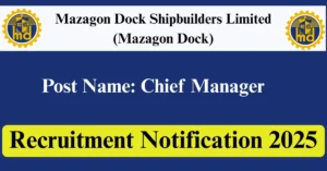 Mazagon Dock Recruitment 2025 Apply for 1 Chief Manager Vacancies in Mumbai – Maharashtra location. Mazagon Dock Shipbuilders Limited Officials are recently published a job notification to fill up 1 Posts through Online mode. All the eligible aspirants can check the Mazagon Dock career official website i.e., mazagondock.in recruitment 2025. The last date to Apply Online on or before 11-Jun-2025.
