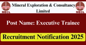 MECL Recruitment 2025 Apply for 10 Executive Trainee Vacancies in All India location. Mineral Exploration & Consultancy Limited Officials are recently published a job notification to fill up 10 Posts through Online mode. All the eligible aspirants can check the MECL career official website i.e., mecl.co.in recruitment 2025. The last date to Apply Online on or before 18-Nov-2025.