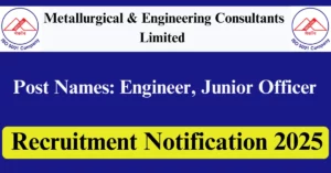 MECON Recruitment 2025 Apply for 89 Engineer, Junior Officer Vacancies in All India location. Metallurgical & Engineering Consultants Limited Officials are recently published a job notification to fill up 89 Posts through Online mode. All the eligible aspirants can check the MECON career official website i.e., meconlimited.co.in recruitment 2025. The last date to Apply Online on or before 28-Jun-2025.