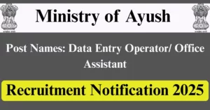 Ministry of Ayush Recruitment 2025 Apply for 3 Data Entry Operator/ Office Assistant Vacancies in Delhi – New Delhi location. Ministry of Ayush Officials are recently published a job notification to fill up 3 Posts through Offline mode. All the eligible aspirants can check the Ministry of Ayush career official website i.e., ayush.gov.in recruitment 2025. The last date to Apply Offline on or before 06-Aug-2025.