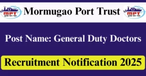 Mormugao Port Trust Recruitment 2025 Apply for 3 General Duty Doctors Vacancies in Goa location. Mormugao Port Trust Officials are recently published a job notification to fill up 3 Posts through Walkin mode. All the eligible aspirants can check the Mormugao Port Trust career official website i.e., mptgoa.gov.in recruitment 2025. The last date to attend for Walk-in-interview on 01-Aug-2025.