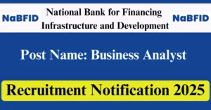 NaBFID Recruitment 2025 Apply for 45 Business Analyst Vacancies in Mumbai – Maharashtra location. National Bank for Financing Infrastructure and Development Officials are recently published a job notification to fill up 45 Posts through Online mode. All the eligible aspirants can check the NaBFID career official website i.e., nabfid.org recruitment 2025. The last date to Apply Online on or before 03-Aug-2025.