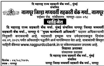 Interested and eligible candidates can apply through the prescribed application form. The Applicant needs to send the application form along with relevant documents to Nagpur District Central Cooperative Bank Ltd., Nagpur, Head Office, Ruakar Road, Chandi Sagar, Nagpur-440018.