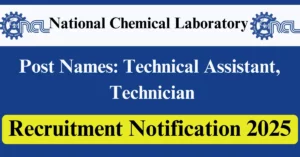 National Chemical Laboratory Recruitment 2025 Apply for 34 Technical Assistant, Technician Vacancies in Pune – Maharashtra location. National Chemical Laboratory Officials are recently published a job notification to fill up 34 Posts through Online mode. All the eligible aspirants can check the National Chemical Laboratory career official website i.e., ncl-india.org recruitment 2025. The last date to Apply Online on or before 12-Jan-2026.