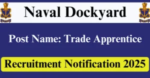 Naval Dockyard Recruitment 2025 Apply for 320 Trade Apprentice Vacancies in Visakhapatnam – Andhra Pradesh location. Naval Dockyard Officials are recently published a job notification to fill up 320 Posts through Offline mode. All the eligible aspirants can check the Naval Dockyard career official website i.e., indiannavy.gov.in recruitment 2025. The last date to Apply Offline on or before 02-Jan-2026.
