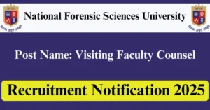 NFSU Recruitment 2025 Apply for Various Visiting Faculty Vacancies in Dharwad – Karnataka location. National Forensic Sciences University Officials are recently published a job notification to fill up Various Posts through Online mode. All the eligible aspirants can check the NFSU career official website i.e., nfsu.ac.in recruitment 2025. The last date to Apply Online on or before 31-Dec-2025.