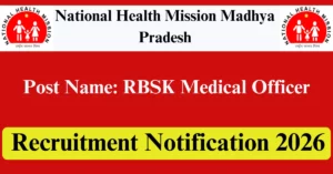 NHM MP Recruitment 2026 Apply for 328 RBSK Medical Officer Vacancies in Madhya Pradesh location. National Health Mission Madhya Pradesh Officials are recently published a job notification to fill up 328 Posts through Online mode. All the eligible aspirants can check the NHM MP career official website i.e., nhmmp.gov.in recruitment 2026. The last date to Apply Online on or before 05-Jan-2026.