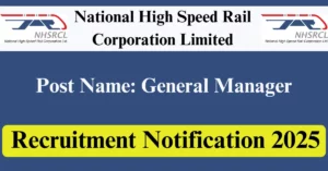 NHSRCL Recruitment 2025 Apply for 2 General Manager Vacancies in Delhi – New Delhi location. National High Speed Rail Corporation Limited Officials are recently published a job notification to fill up 2 Posts through E-Mail mode. All the eligible aspirants can check the NHSRCL career official website i.e., nhsrcl.in recruitment 2025. The last date to send an E-Mail on or before 12-Jul-2025.