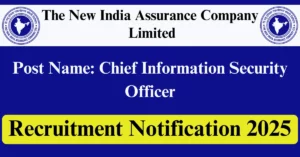 NIACL Recruitment 2025 Apply for 1 Chief Information Security Officer Vacancies in Mumbai – Maharashtra location. The New India Assurance Company Limited Officials are recently published a job notification to fill up 1 Posts through E-Mail mode. All the eligible aspirants can check the NIACL career official website i.e., newindia.co.in recruitment 2025. The last date to send an E-Mail on or before 16-Dec-2025.