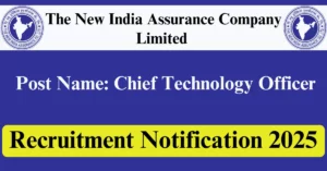 NIACL Recruitment 2025 Apply for 1 Chief Technology Officer Vacancies in Mumbai – Maharashtra location. The New India Assurance Company Limited Officials are recently published a job notification to fill up 1 Posts through E-Mail mode. All the eligible aspirants can check the NIACL career official website i.e., newindia.co.in recruitment 2025. The last date to send an E-Mail on or before 25-Dec-2025.