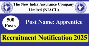 NIACL Recruitment 2025 Apply for 500 Apprentice Vacancies in Al India location. The New India Assurance Company Limited Officials are recently published a job notification to fill up 500 Posts through Online mode. All the eligible aspirants can check the NIACL career official website i.e., newindia.co.in recruitment 2025. The last date to Apply Online on or before 20-Jun-2025.