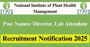 NIPHM Recruitment 2025 Apply for 3 Director, Lab Attendant Vacancies in Hyderabad – Telangana location. National Institute of Plant Health Management Officials are recently published a job notification to fill up 3 Posts through Offline mode. All the eligible aspirants can check the NIPHM career official website i.e., niphm.gov.in recruitment 2025. The last date to Apply Offline on or before 30-Nov-2025.