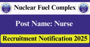 Nuclear Fuel Complex Recruitment 2025 Apply for 4 Nurse Vacancies in Chittorgarh – Rajasthan location. Nuclear Fuel Complex Officials are recently published a job notification to fill up 4 Posts through Walkin mode. All the eligible aspirants can check the Nuclear Fuel Complex career official website i.e., nfc.gov.in recruitment 2025. The last date to attend for Walk-in-interview on 12-Nov-2025.