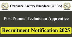OFBA Recruitment 2025 Apply for 50 Technician Apprentice Vacancies in Bhandara – Maharashtra location. Ordnance Factory Bhandara Officials are recently published a job notification to fill up 50 Posts through Offline mode. All the eligible aspirants can check the OFBA career official website i.e., munitionsindia.in recruitment 2025. The last date to Apply Offline on or before 15-Dec-2025.