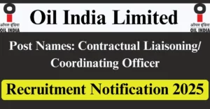 Oil India Recruitment 2025 Apply for 1 Contractual Liaisoning/ Coordinating Officer Vacancies in Itanagar – Arunachal Pradesh, Duliajan – Assam location. Oil India Limited Officials are recently published a job notification to fill up 1 Posts through Walkin mode. All the eligible aspirants can check the Oil India career official website i.e., oil-india.com recruitment 2025. The last date to attend for Walk-in-interview on 20-Dec-2025.
