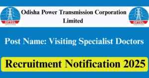 OPTCL Recruitment 2025 Apply for 2 Visiting Specialist Doctors Vacancies in Khordha – Odisha location. Odisha Power Transmission Corporation Limited Officials are recently published a job notification to fill up 2 Posts through Offline mode. All the eligible aspirants can check the OPTCL career official website i.e., optcl.co.in recruitment 2025. The last date to Apply Offline on or before 11-Aug-2025.