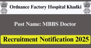 Educational Qualification: As per Ordnance Factory Hospital Khadki official notification candidate should have completed MBBS from any of the recognized boards or Universities.