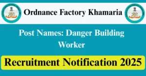 Ordnance Factory Khamaria Recruitment 2025 Apply for 189 Danger Building Worker Vacancies in Jabalpur – Madhya Pradesh location. Ordnance Factory Khamaria Officials are recently published a job notification to fill up 189 Posts through Offline mode. All the eligible aspirants can check the Ordnance Factory Khamaria career official website i.e., munitionsindia.in recruitment 2025. The last date to Apply Offline on or before 08-Aug-2025.