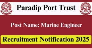 Paradip Port Trust Recruitment 2025 Apply for 02 Marine Engineer Vacancies in Jagatsinghpur – Odisha location. Paradip Port Trust Officials are recently published a job notification to fill up 02 Posts through Offline mode. All the eligible aspirants can check the Paradip Port Trust career official website i.e., paradipport.gov.in recruitment 2025. The last date to Apply Offline on or before 15-Nov-2025.