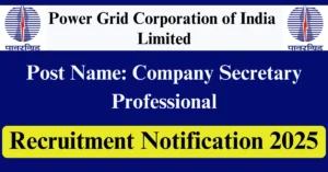 PGCIL Recruitment 2025 Apply for 48 Company Secretary Professional Vacancies in All India location. Power Grid Corporation of India Limited Officials are recently published a job notification to fill up 48 Posts through Online mode. All the eligible aspirants can check the PGCIL career official website i.e., powergrid.in recruitment 2025. The last date to Apply Online on or before 31-Dec-2025.