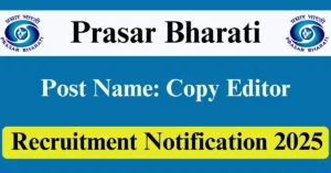 Prasar Bharati Recruitment 2025 Apply for 29 Copy Editor Vacancies in All India location. Prasar Bharati Officials are recently published a job notification to fill up 29 Posts through Online mode. All the eligible aspirants can check the Prasar Bharati career official website i.e., prasarbharati.gov.in recruitment 2025. The last date to Apply Online on or before 03-Dec-2025.