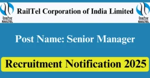 RailTel Recruitment 2025 Apply for 01 Senior Manager (Signaling) Vacancies in Jaipur – Rajasthan location. RailTel Corporation of India Limited Officials are recently published a job notification to fill up 01 Posts through Offline mode. All the eligible aspirants can check the RailTel career official website i.e., railtel.in recruitment 2025. The last date to Apply Offline on or before 14-Aug-2025.