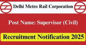 DMRC Recruitment 2025 – Apply Offline for 01 Supervisor (Civil) Post