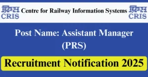 CRIS Recruitment 2025 – Apply Offline for 02 Assistant Manager (PRS) Posts