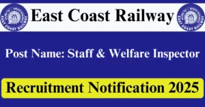 East Coast Railway Recruitment 2025 – Apply Offline for 04 Staff & Welfare Inspector Posts