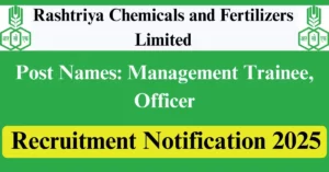 RCFL Recruitment 2025 Apply for 75 Management Trainee, Officer Vacancies in All India location. Rashtriya Chemicals and Fertilizers Limited Officials are recently published a job notification to fill up 75 Posts through Online mode. All the eligible aspirants can check the RCFL career official website i.e., rcfltd.com recruitment 2025. The last date to Apply Online on or before 16-Jun-2025.