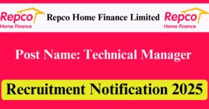 RHFL Recruitment 2025 Apply for Various Technical Manager Vacancies in Tiruchirappalli, Madurai, Chennai – Tamil Nadu, Hyderabad – Telangana, Ahmedabad – Gujarat, Bengaluru – Karnataka location. Repco Home Finance Limited Officials are recently published a job notification to fill up Various Posts through Offline mode. All the eligible aspirants can check the RHFL career official website i.e., repcohome.com recruitment 2025. The last date to Apply Offline on or before 31-Aug-2025.