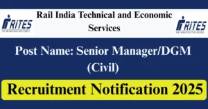 RITES Recruitment 2025 Apply for 01 Senior Manager/DGM (Civil) Vacancies in All India location. Rail India Technical and Economic Services Officials are recently published a job notification to fill up 01 Posts through E-Mail mode. All the eligible aspirants can check the RITES career official website i.e., rites.com recruitment 2025. The last date to send an E-Mail on or before 01-Sep-2025.